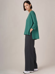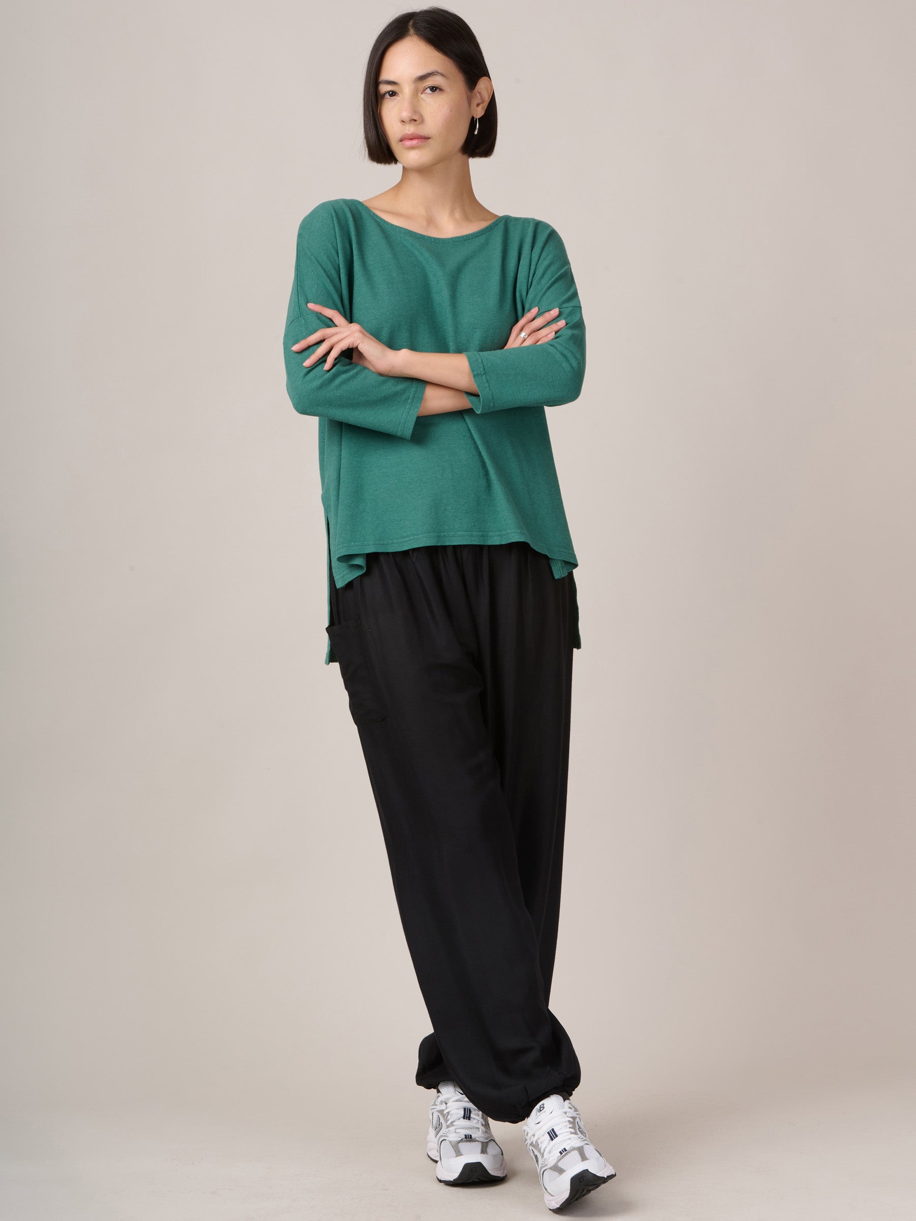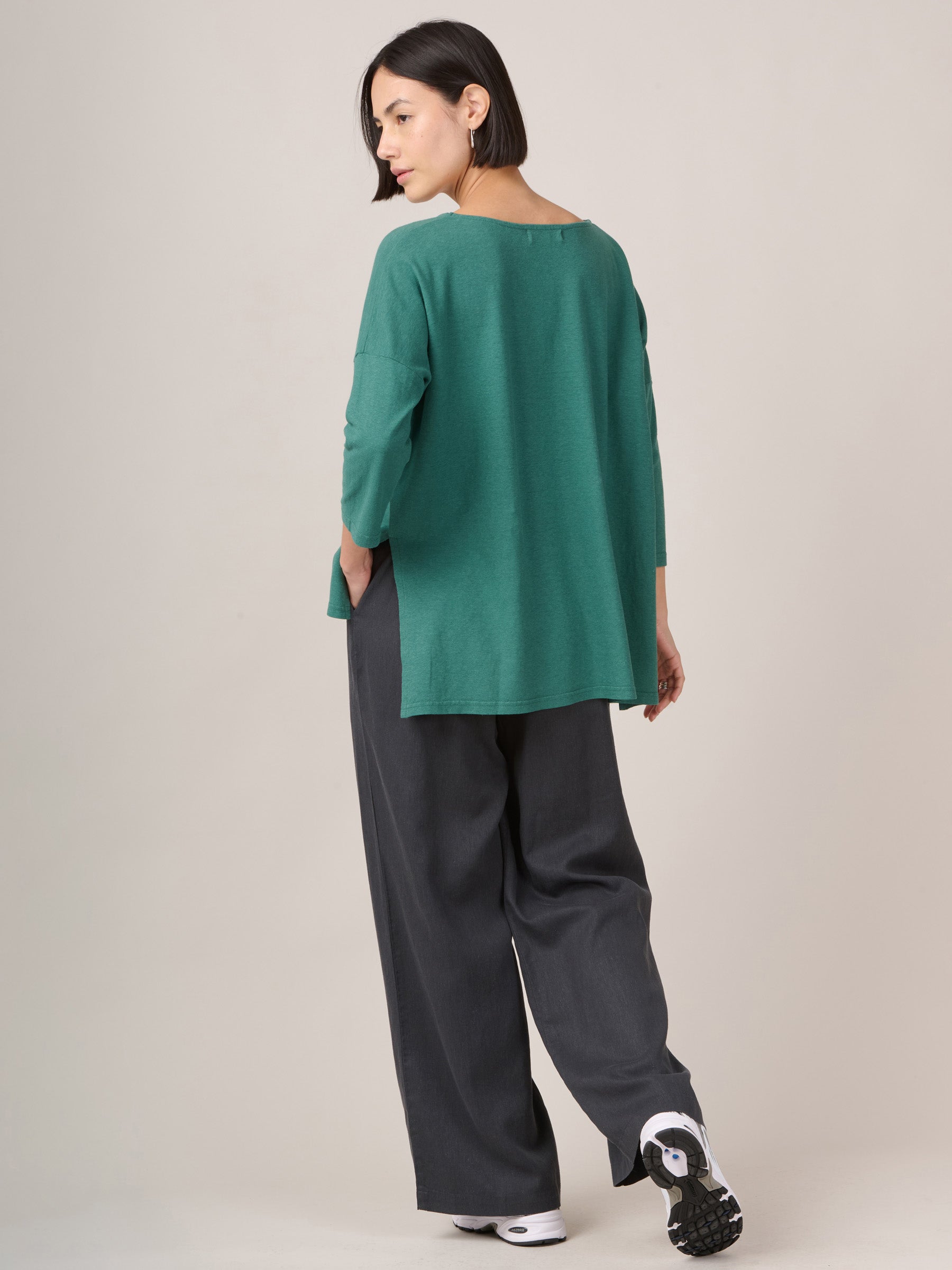 Confectionné à partir d'un tissu sergé en chanvre et Tencel hautement respirant, pré-lavé pour obtenir une douceur exceptionnelle, ce pantalon allie confort décontracté et polyvalence. Doté d'une coupe légèrement décontractée au niveau de la taille et des hanches, il permet une grande liberté de mouvement sans compromettre le style. Les jambes longues et droites présentent des détails de piqûres, tandis que la ceinture classique apporte une finition raffinée et soignée.