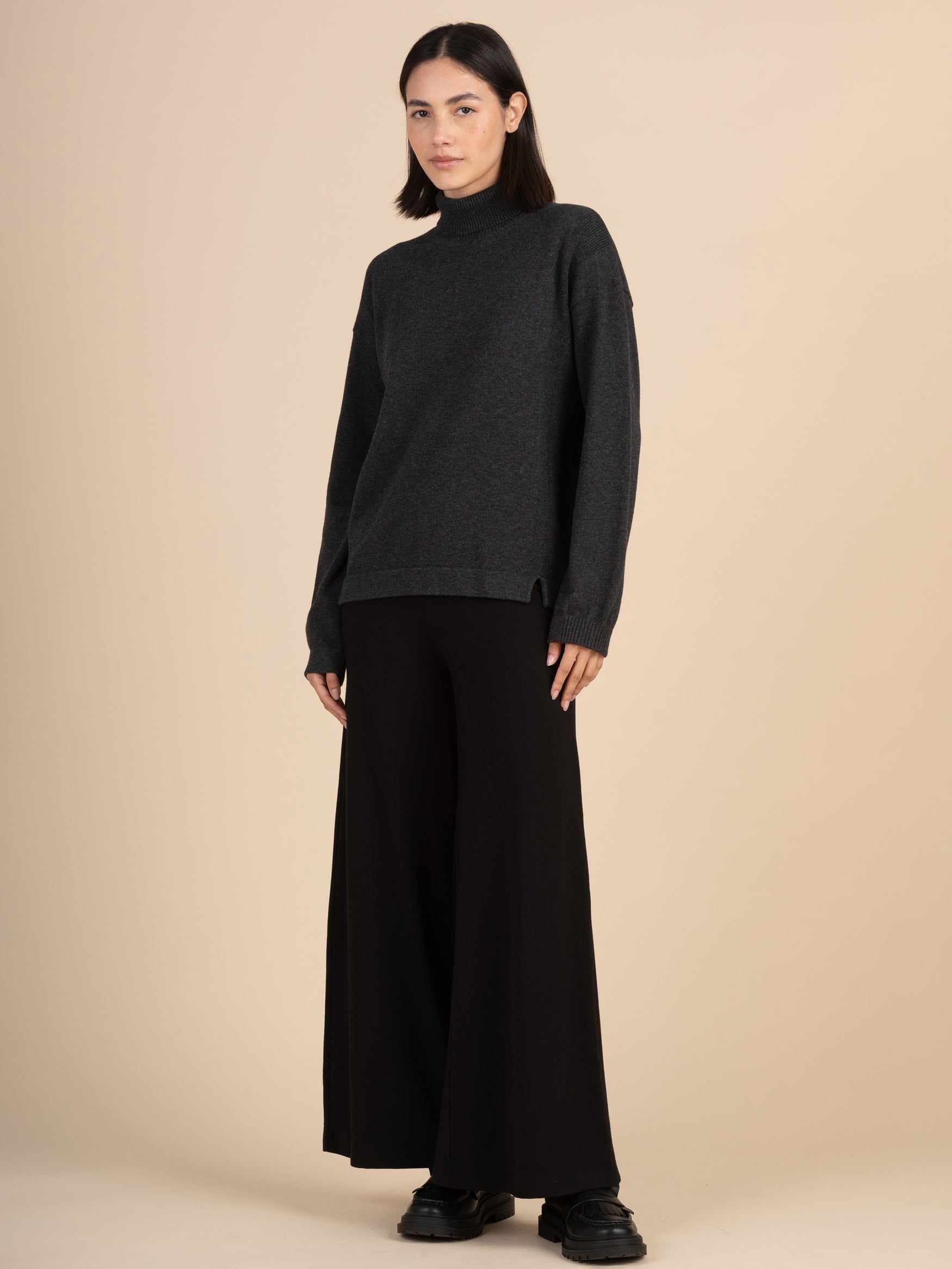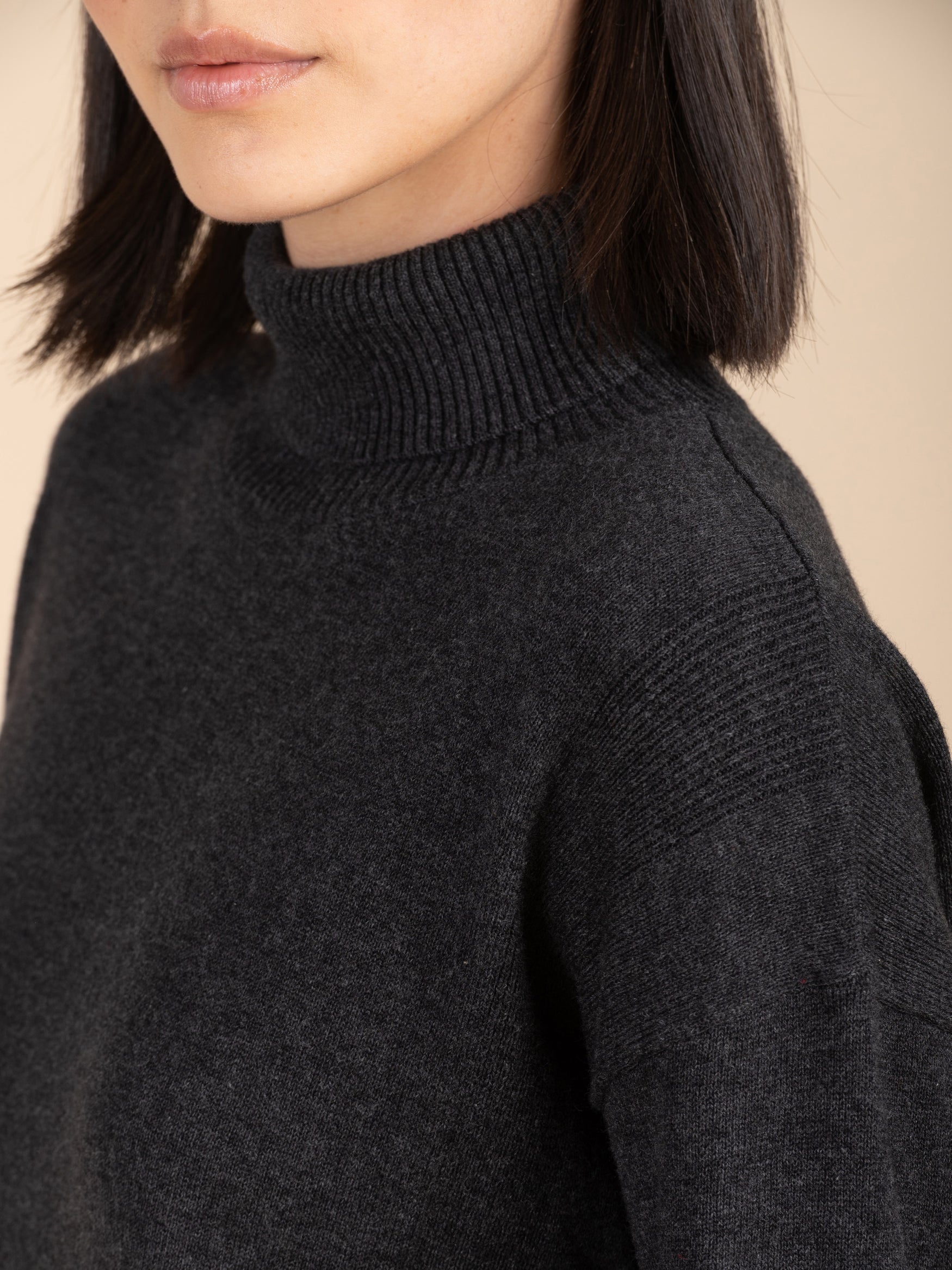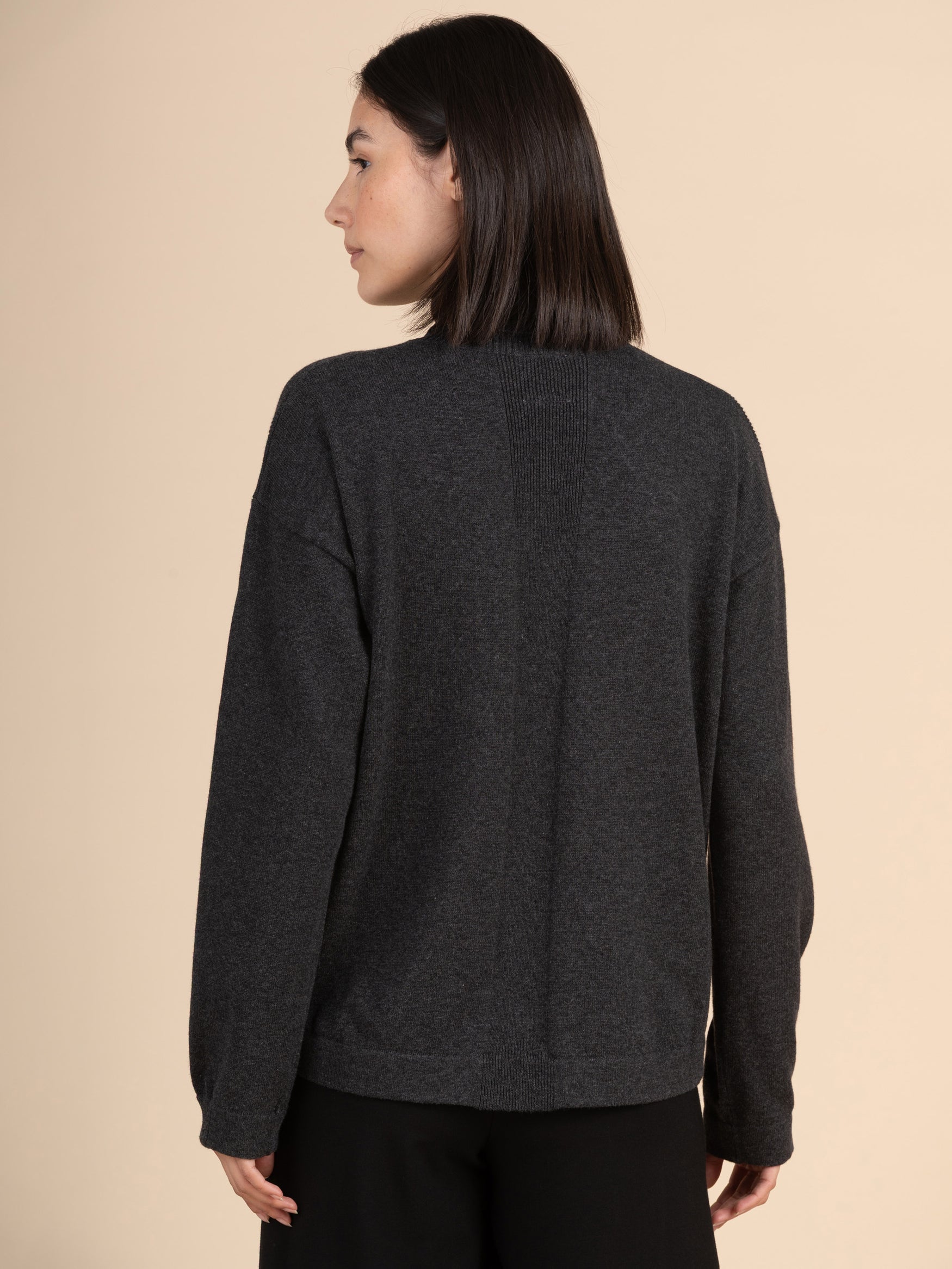 Le pull Kume est tissé à partir d'un mélange haut de gamme de coton BCI et de cachemire, offrant l'équilibre parfait entre la douceur du cachemire et le confort du coton. Ce tricot fin est confectionné dans une coupe décontractée avec un col roulé plissé pour un look moderne et raffiné. Des empiècements décoratifs en côtes avec de subtiles fentes à l'avant et un large détail en côtes à l'arrière créent des accents distinctifs, tandis que les poignets à demi-côtes ajoutent une touche finale raffinée. Une pièce polyvalente qui se distingue par ses détails discrets.