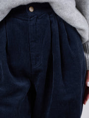 Pantalon velours côtelé à plis avant en coton biologique et chanvre