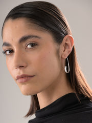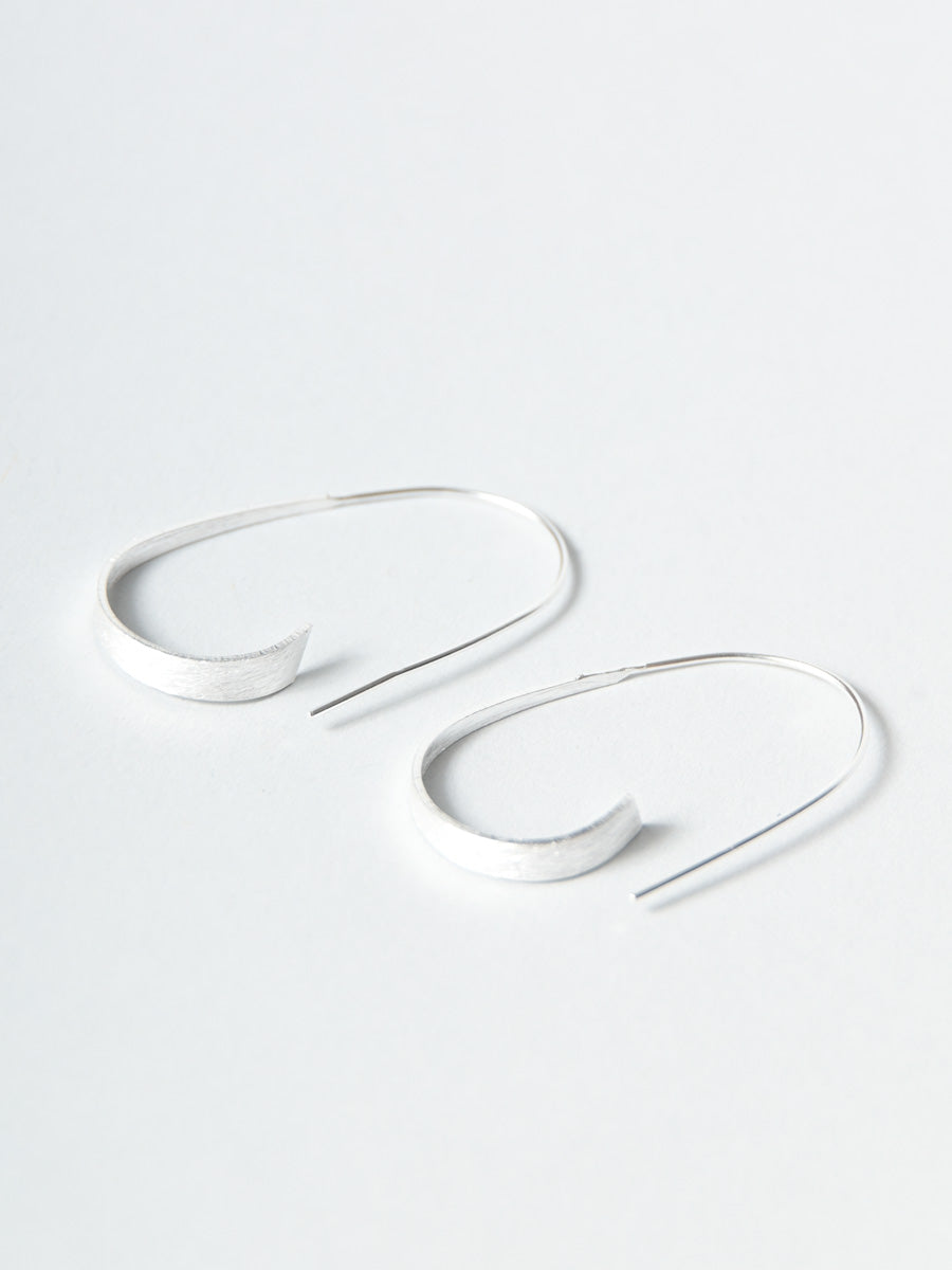 These simple yet elegant thread through oval hoop earrings is handcrafted in 925 sterling silver with a matt finish. Delicate and light weight, ideal for everyday wearing.