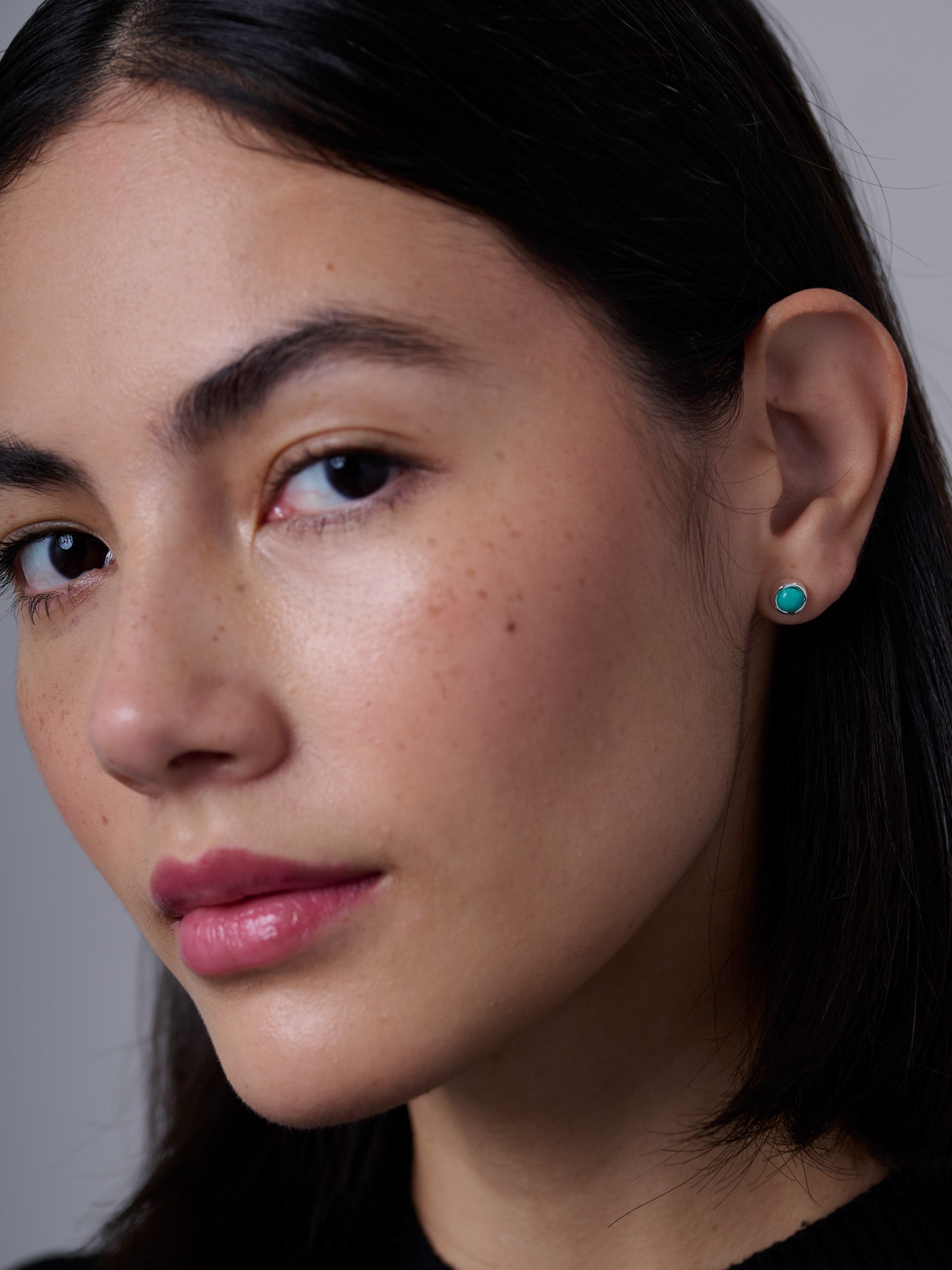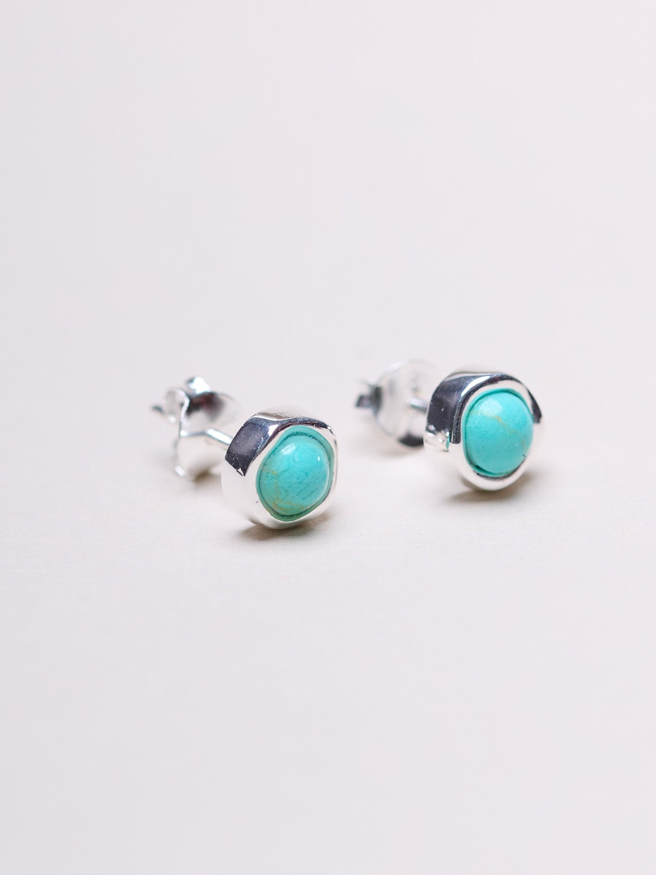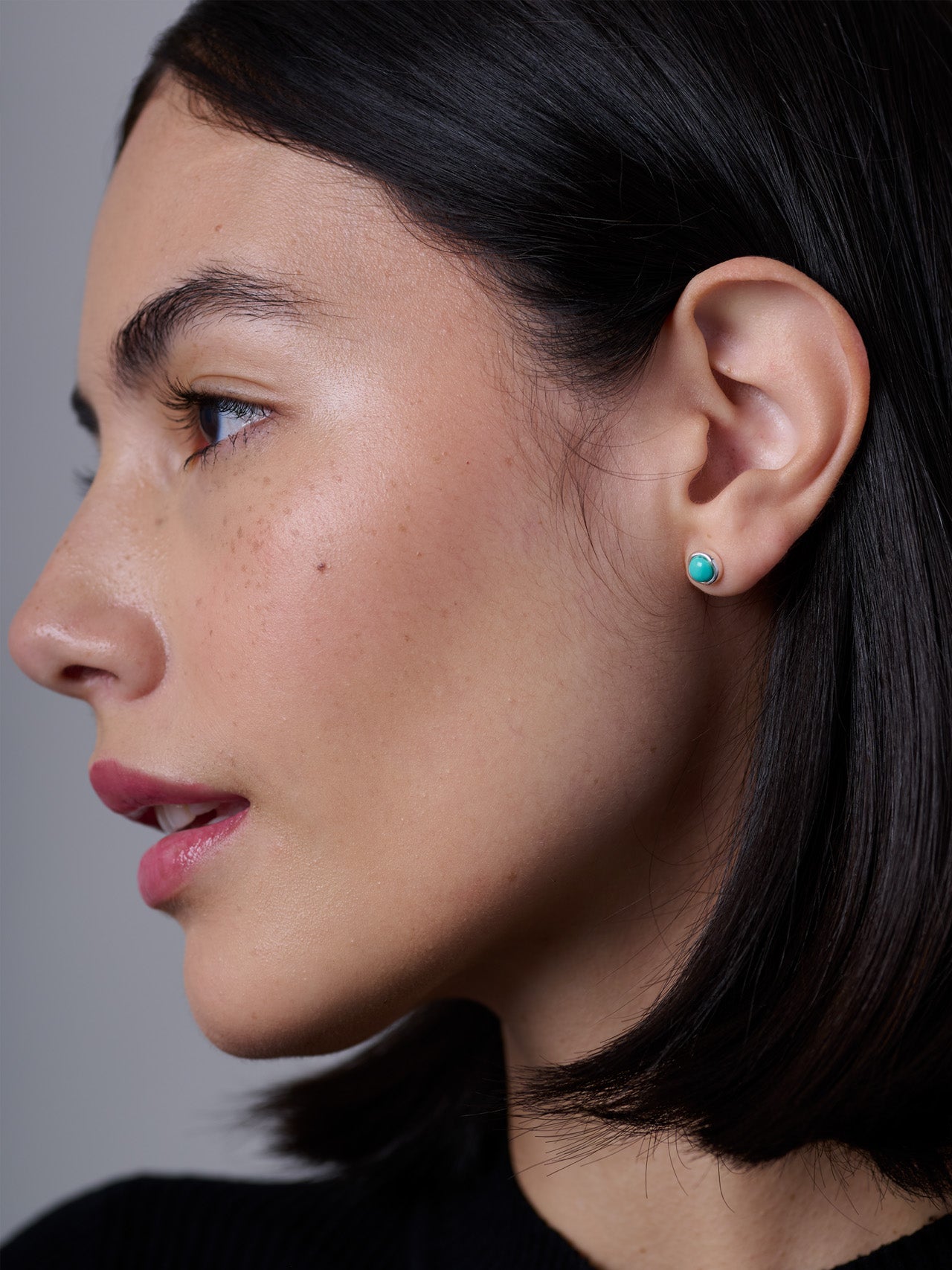 Crafted in 925 sterling silver and natural Turquoise gemstone, this pair of stud earrings have a minimalistic elegance. It is great for everyday wearing on its own, but also goes well with earring stacks.