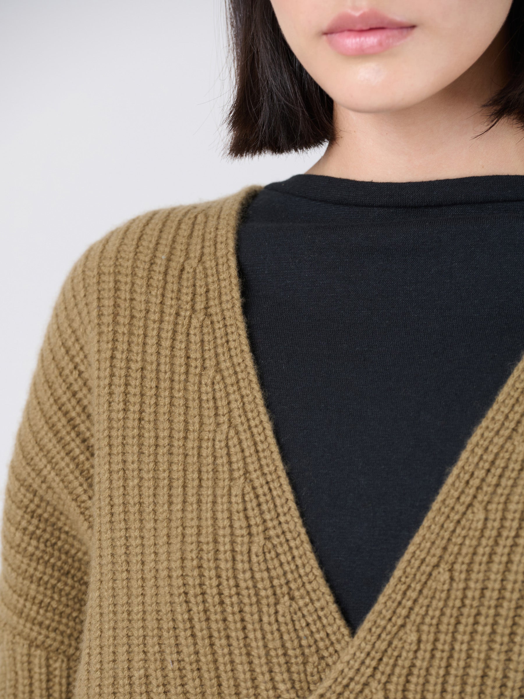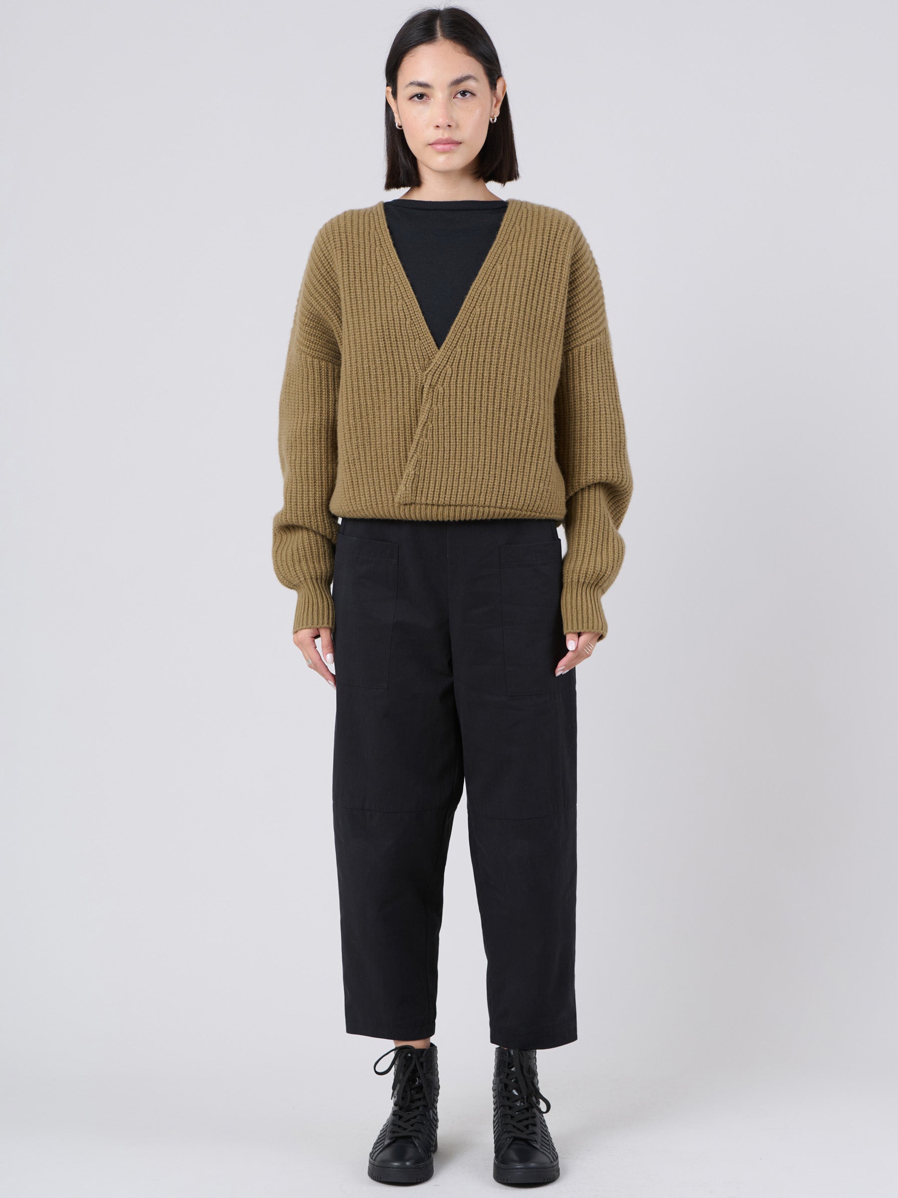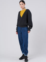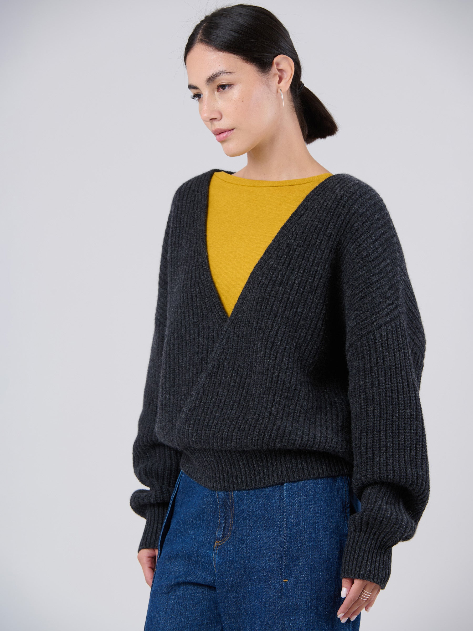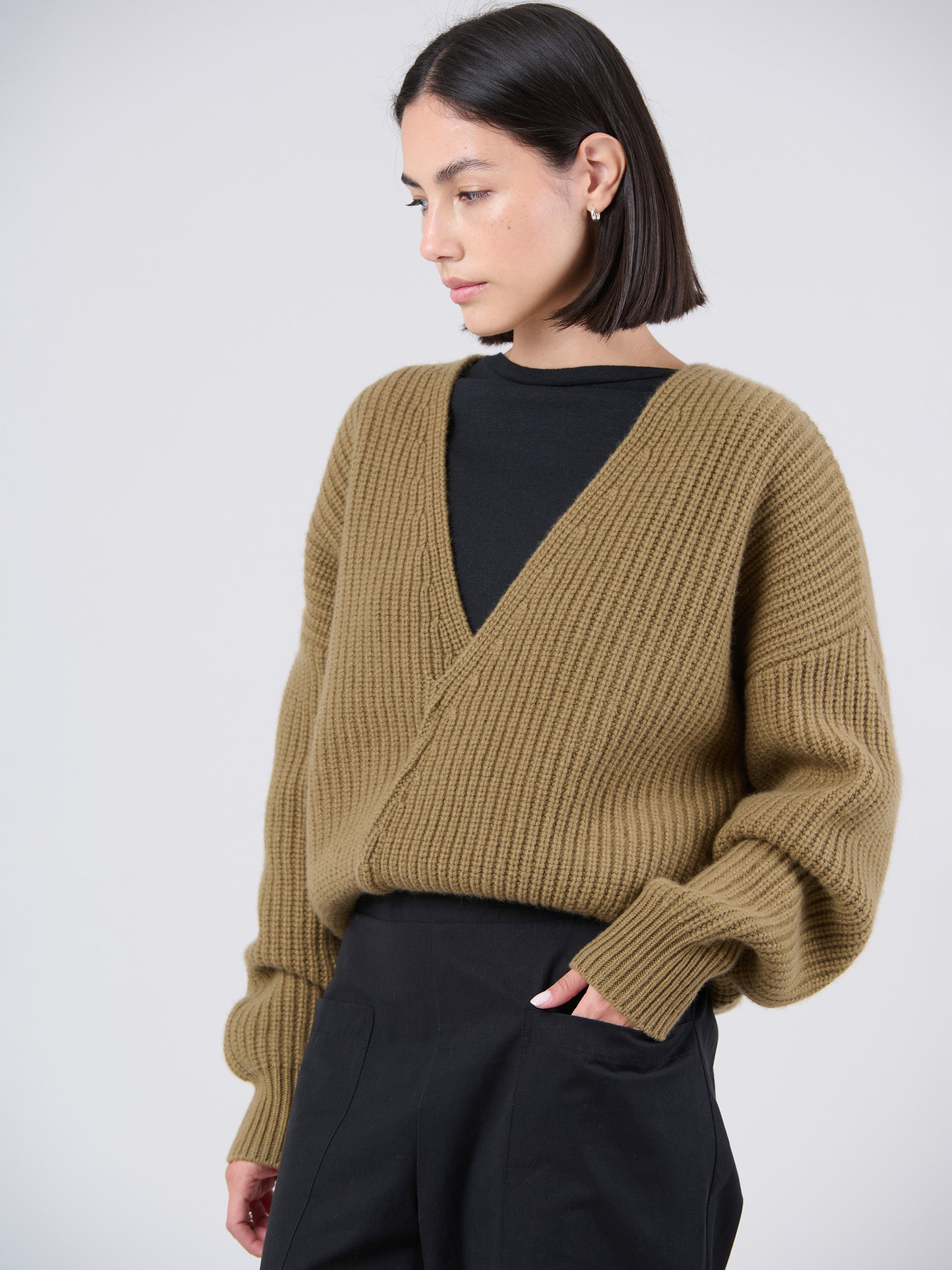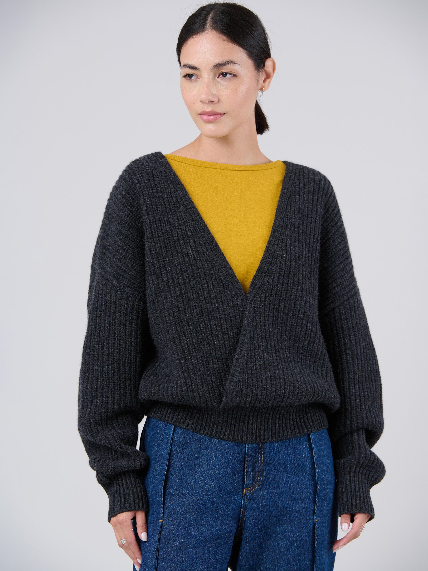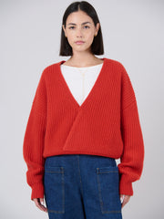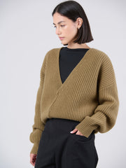 Wool Bamboo Blend Chunky Rib Wrap Sweater