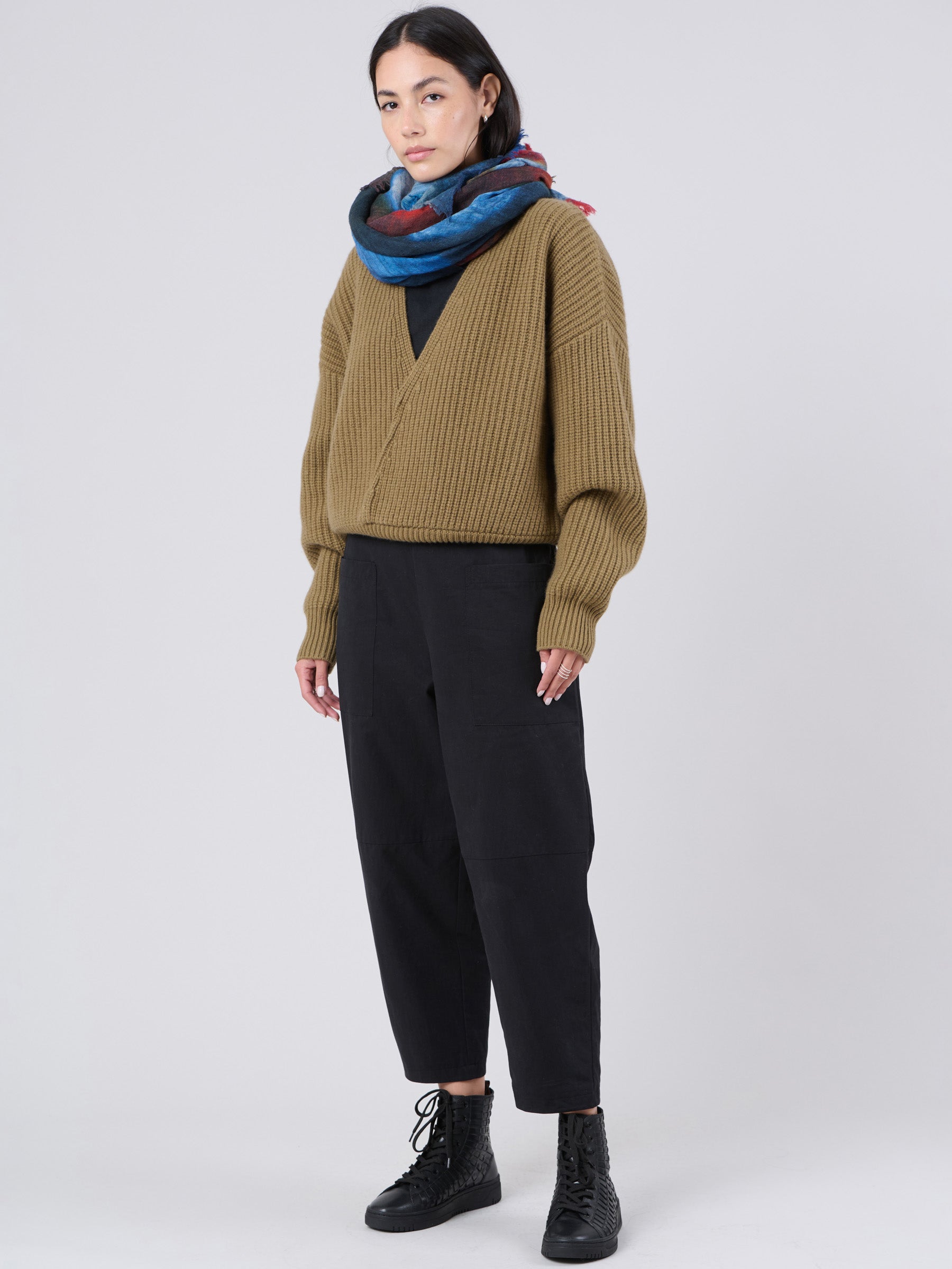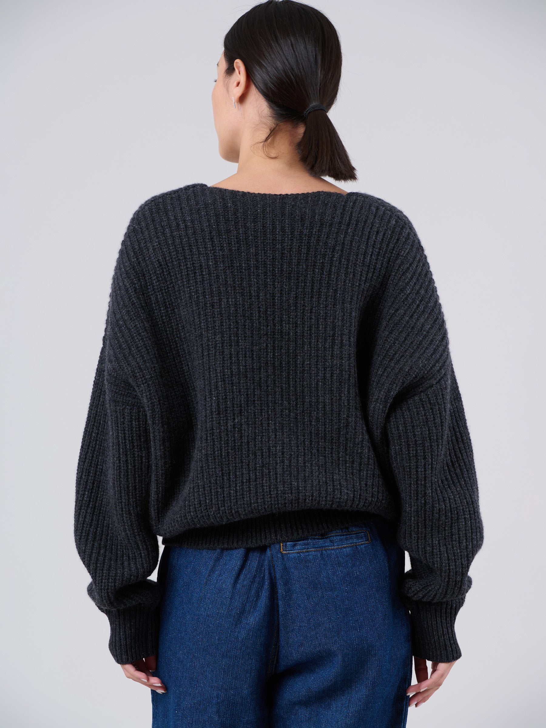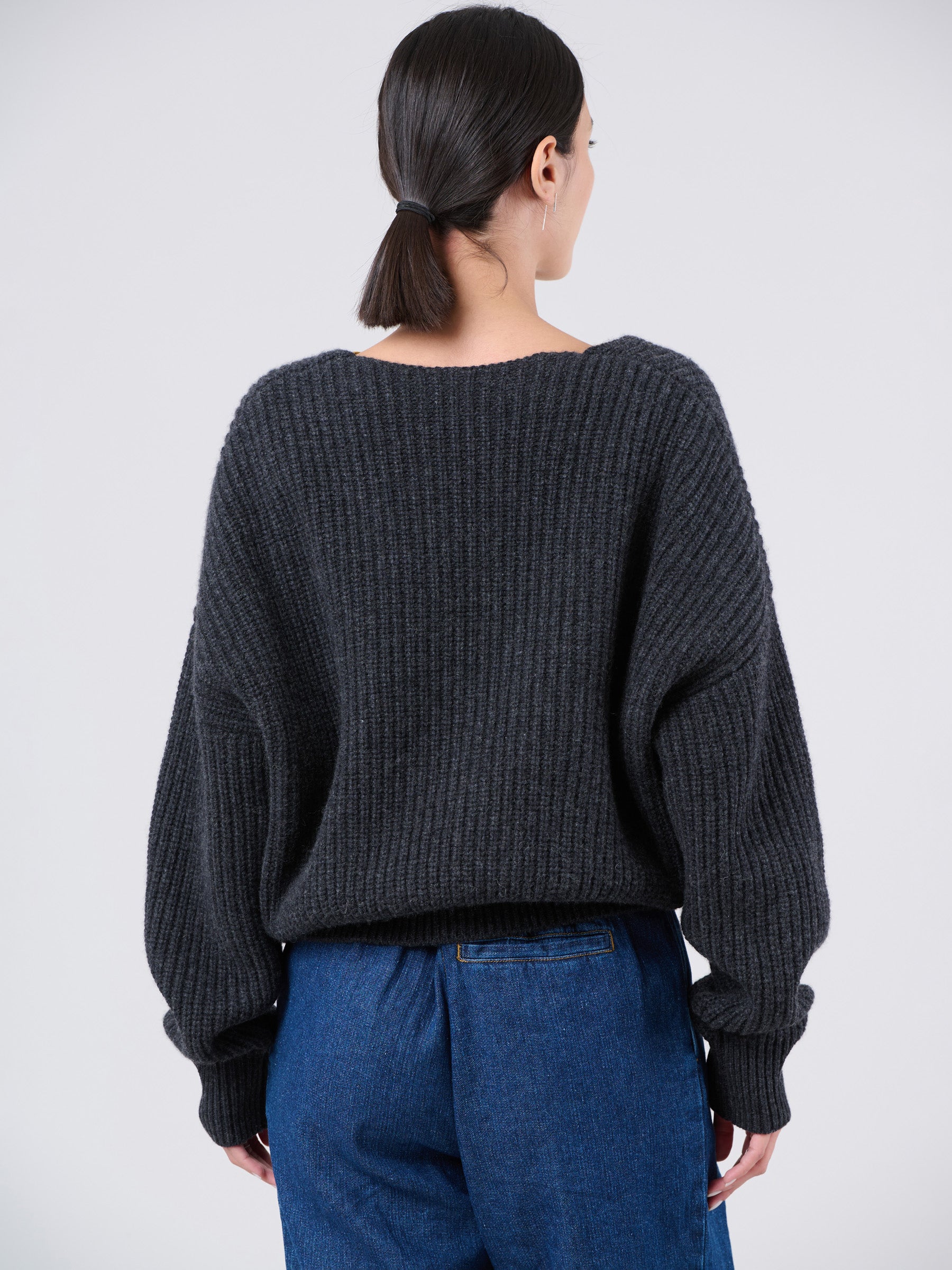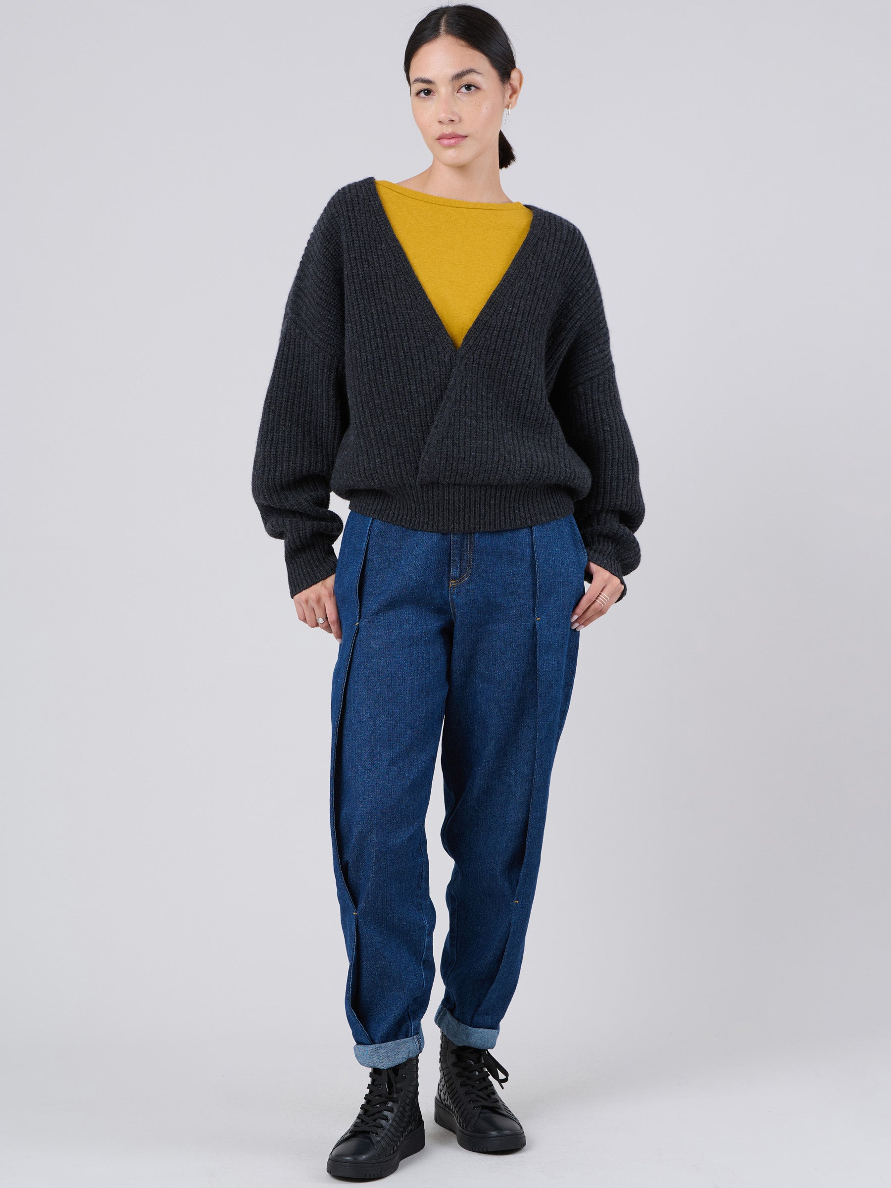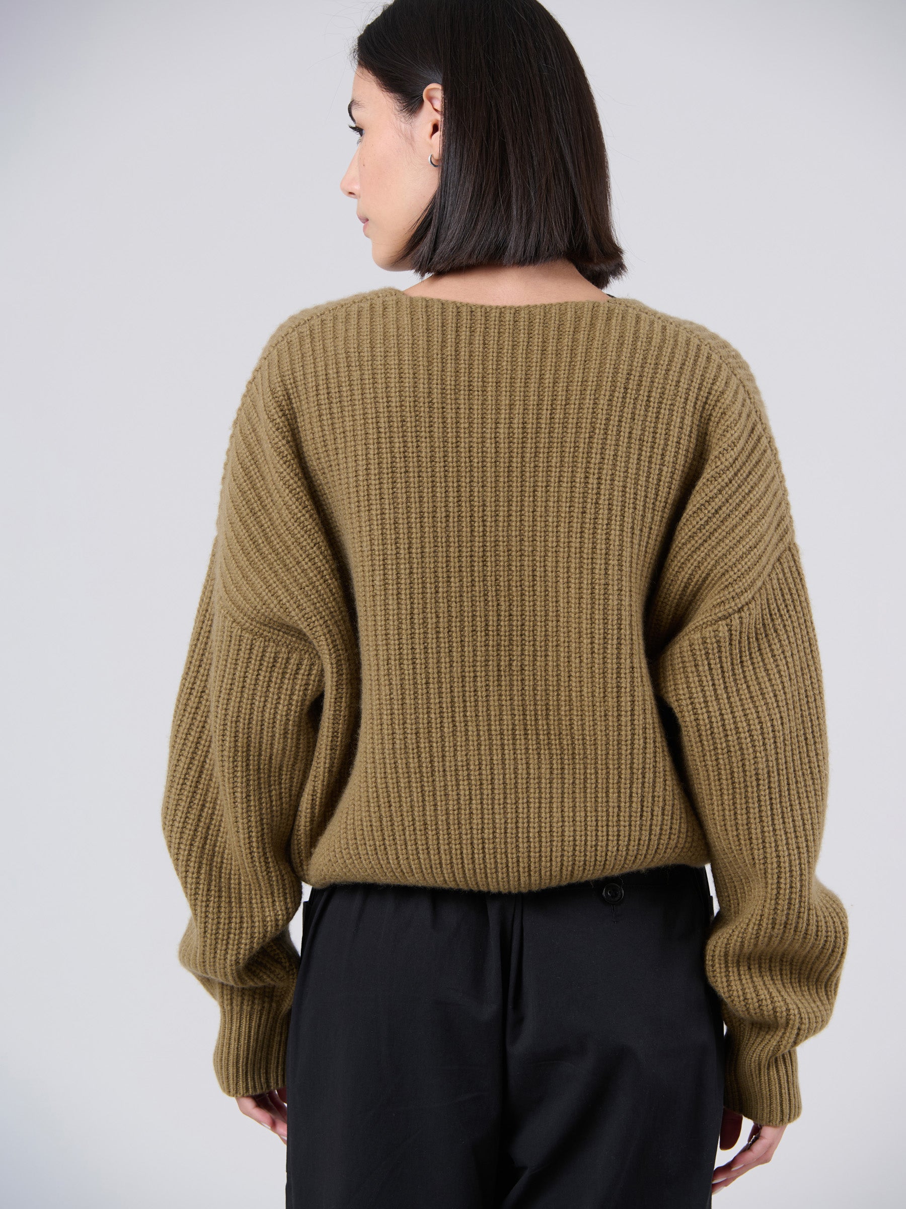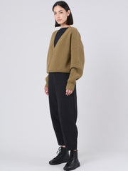Wool Bamboo Blend Chunky Rib Wrap Sweater