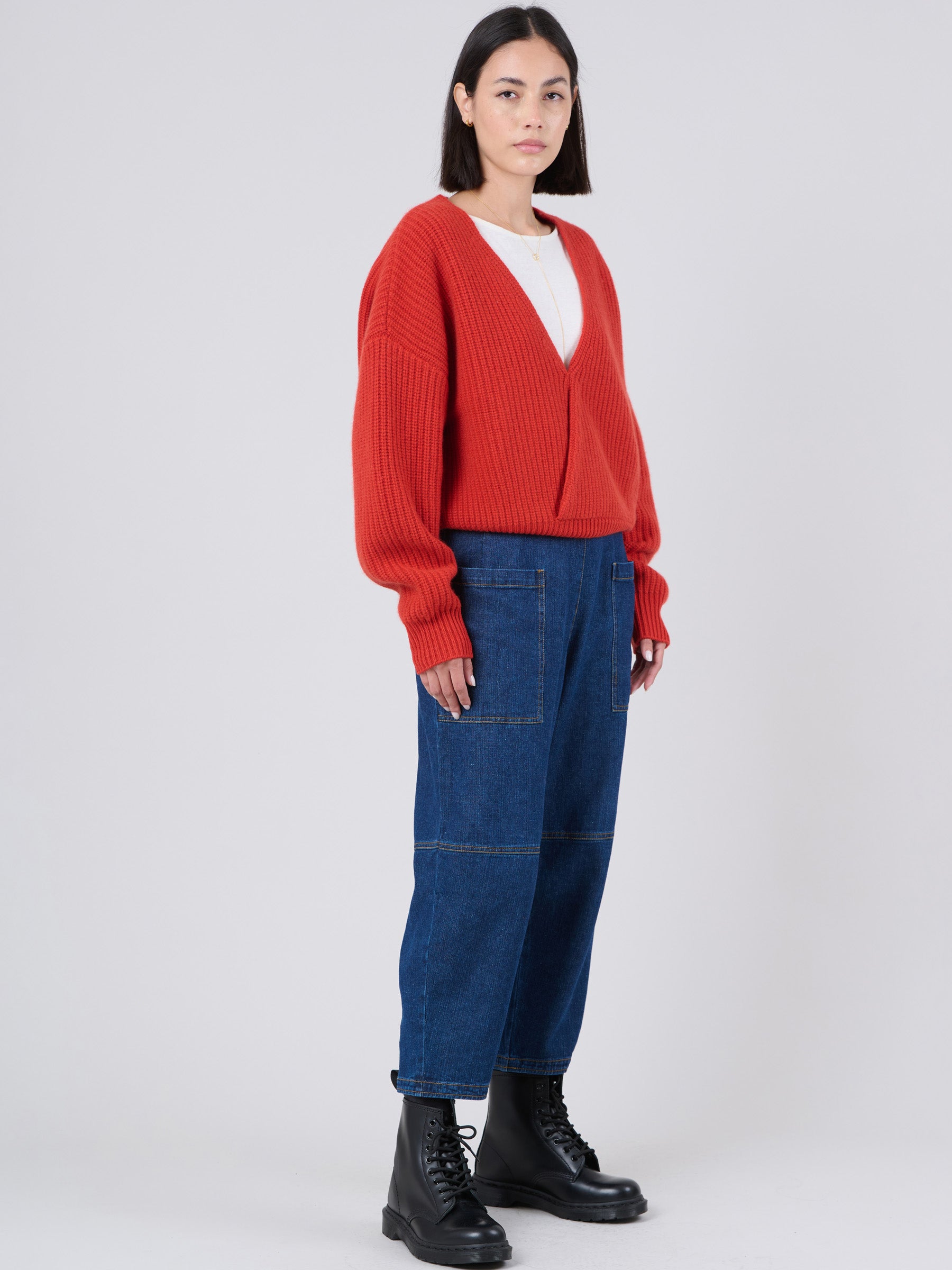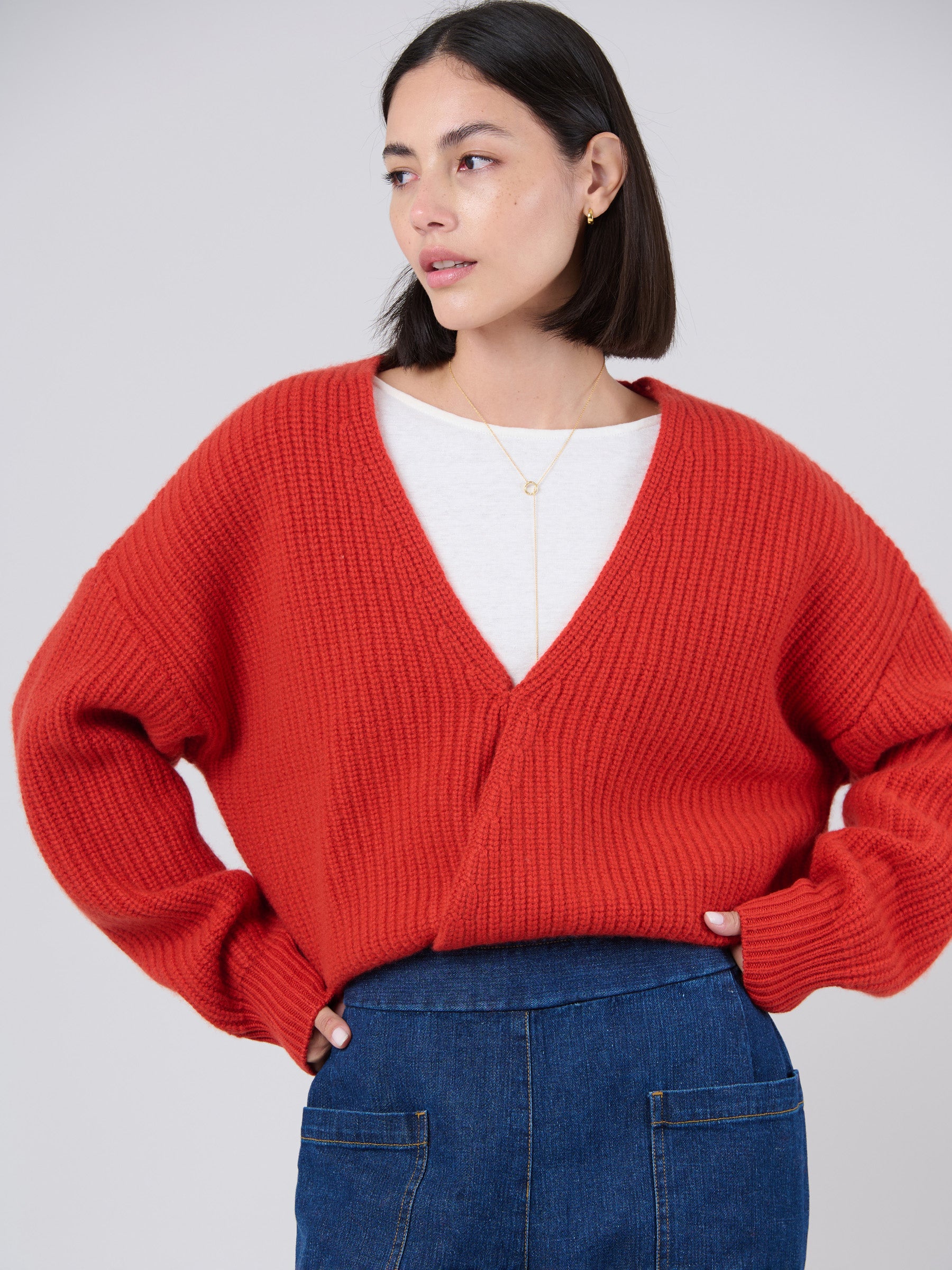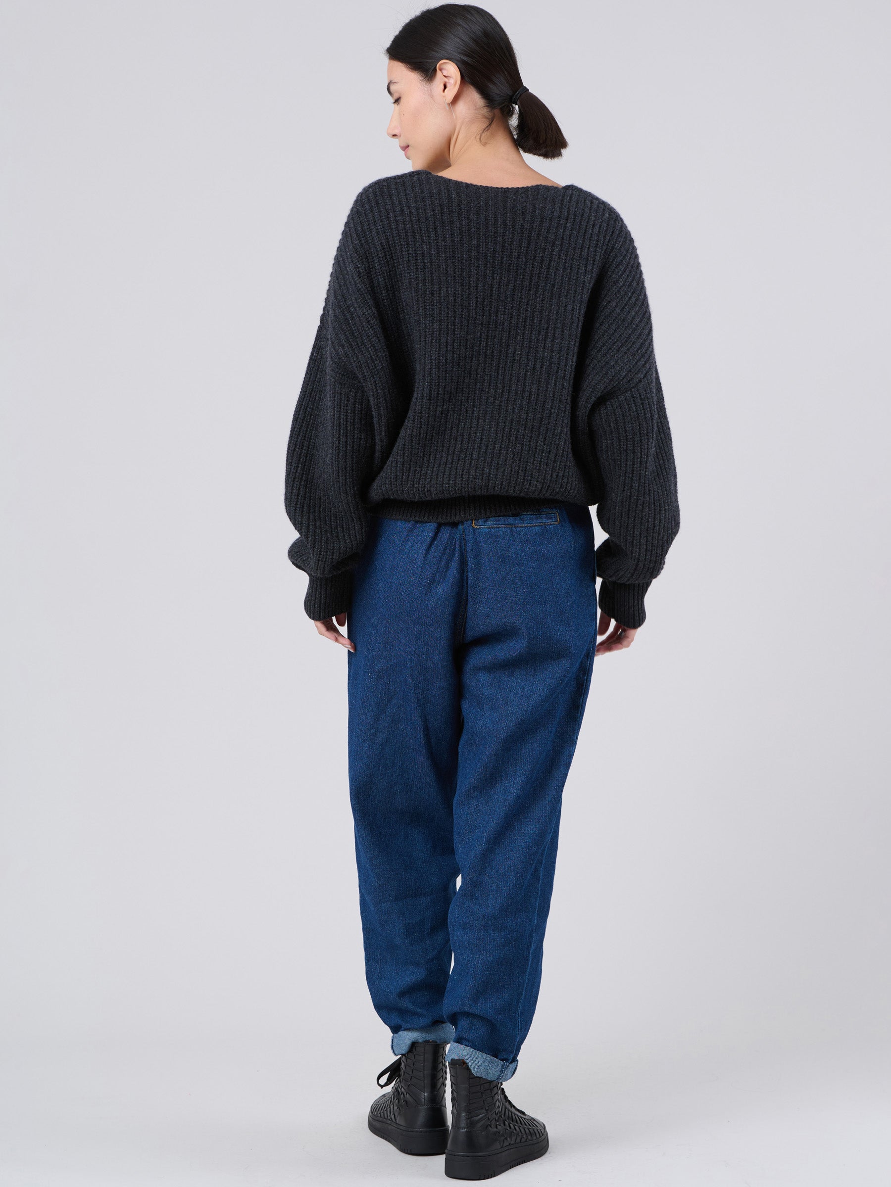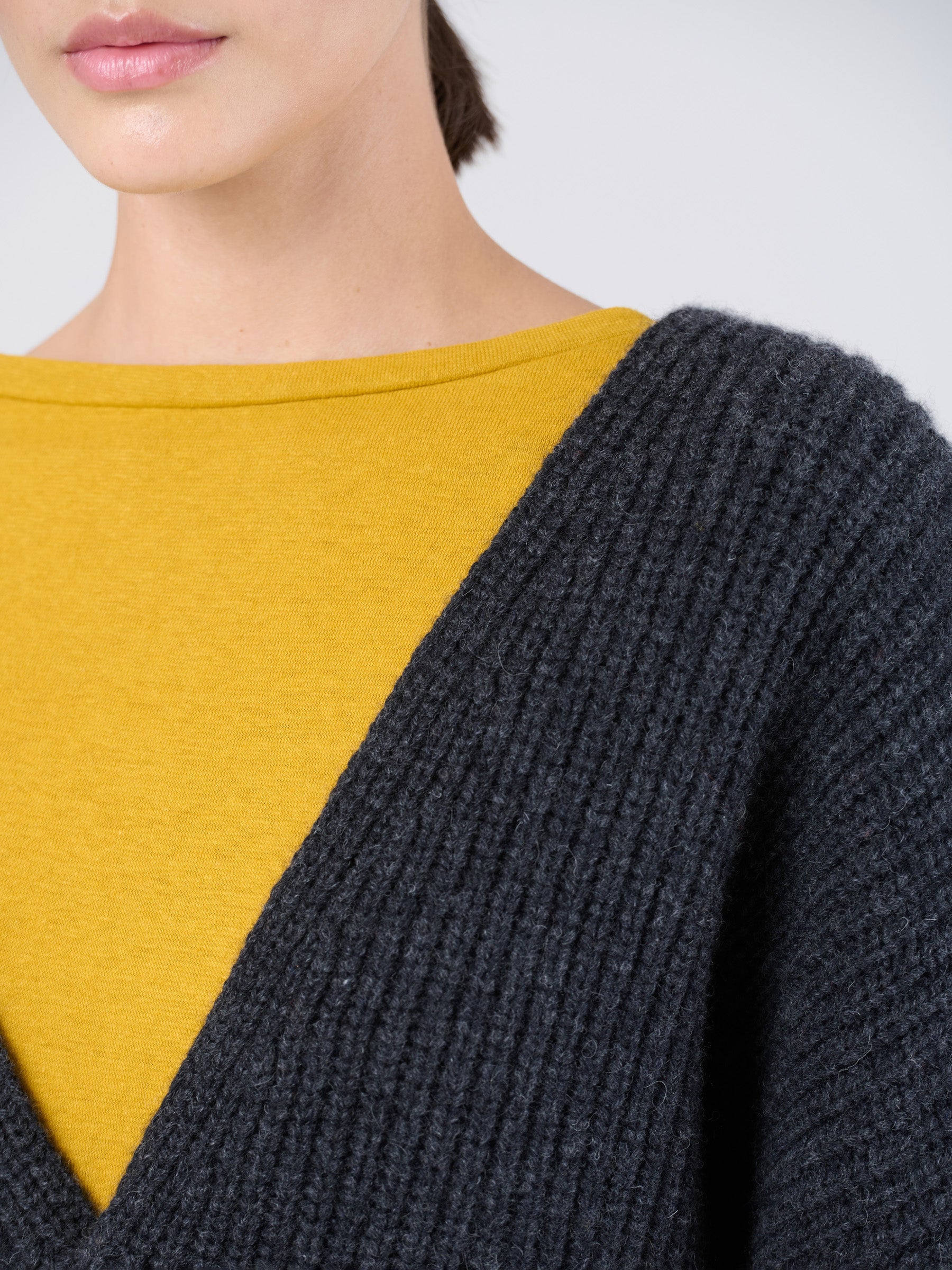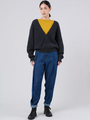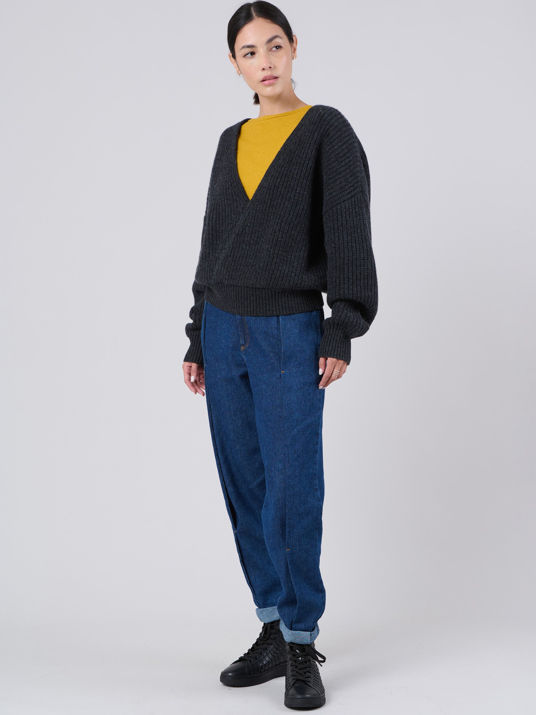 Wool Bamboo Blend Chunky Rib Wrap Sweater