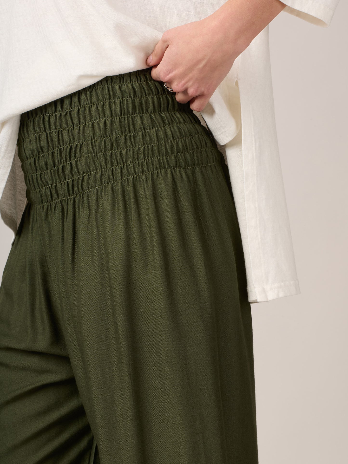 - Wide shirred elasticated waist for extra comfort
