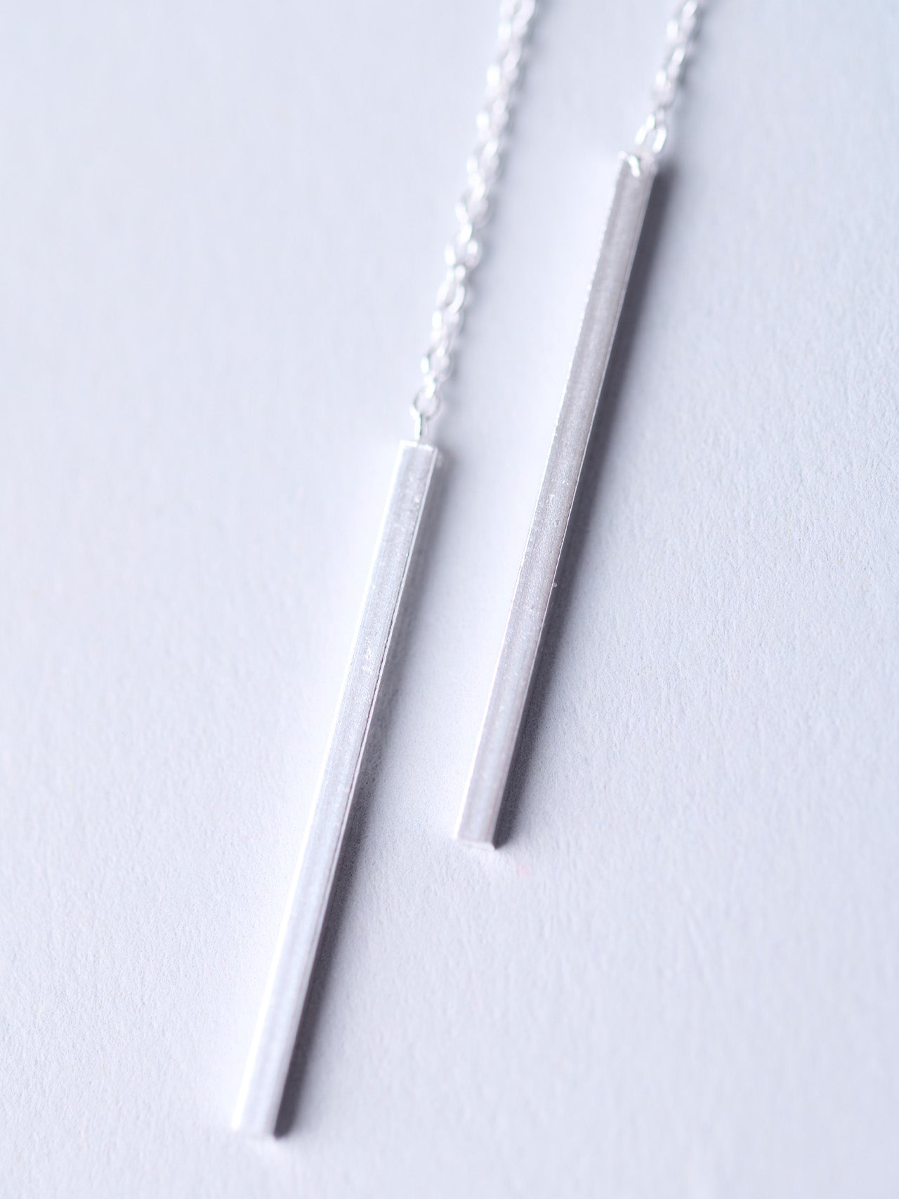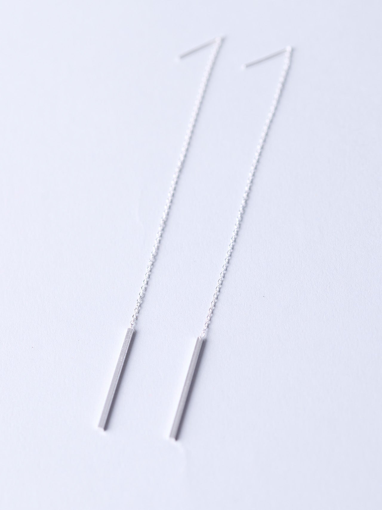 Sterling Silver Threader Long Chain Earrings With Plinth