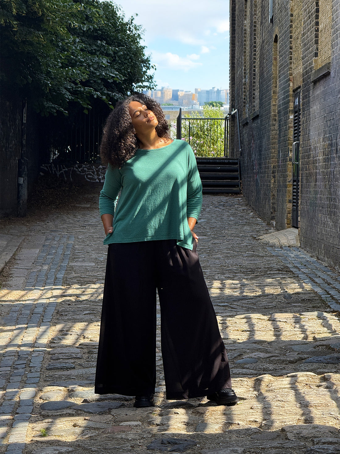Below are the measurements we use as a guide to create our styles during the design process. Our garments are designed on the basis of a woman measuring between 1.68 m and 1.80 m. The fit of a garment varies according to style.