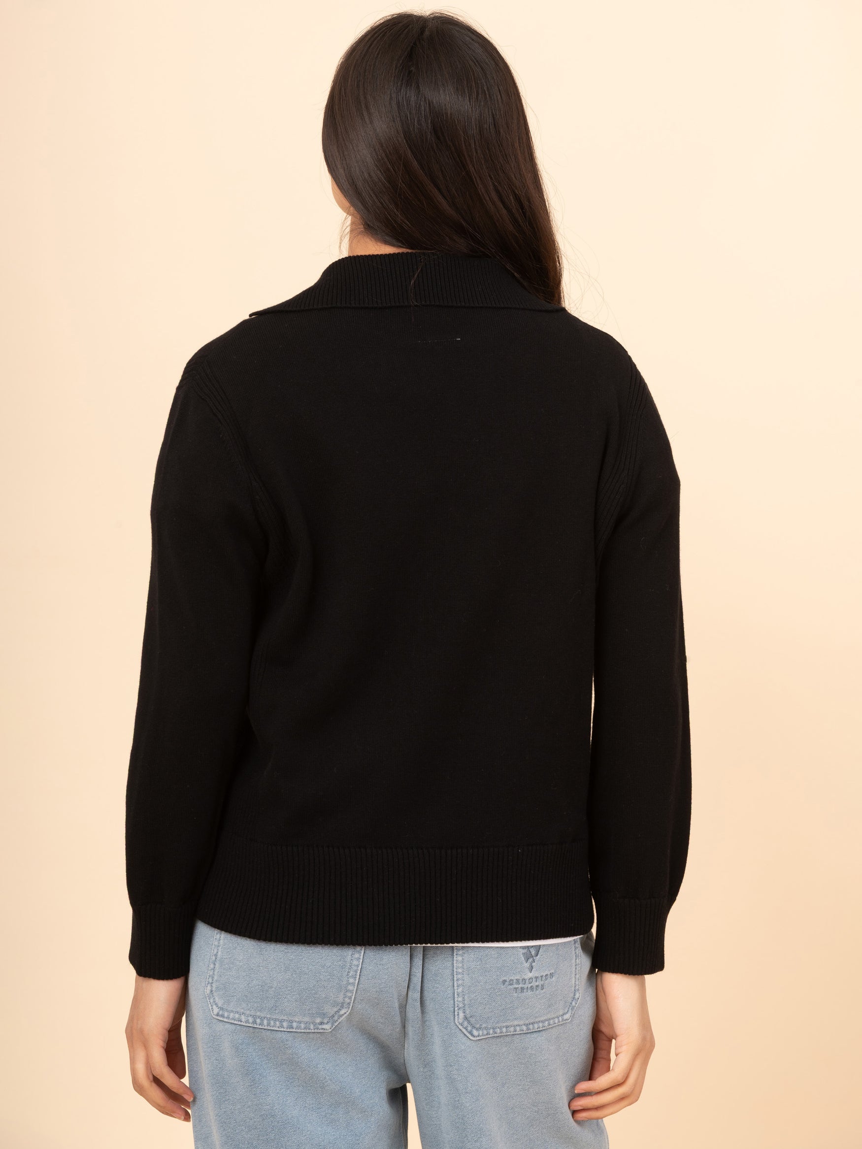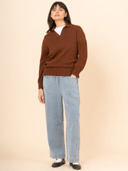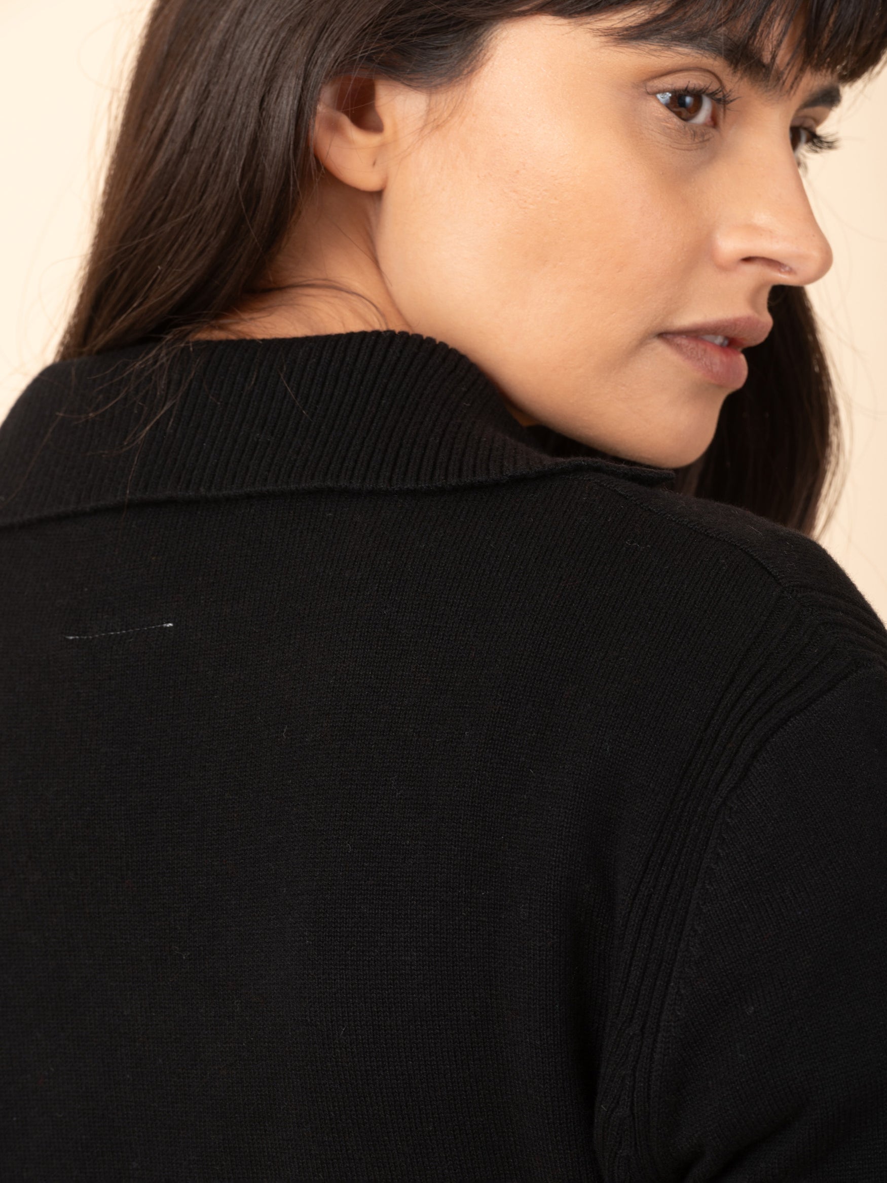 Confectionné dans un mélange haut de gamme de coton BCI et de cachemire, ce pull polo à mailles fines offre la douceur exceptionnelle du cachemire et la facilité d'entretien du coton. Il est doté d'un col ouvert côtelé, de poignets et d'un ourlet côtelés double épaisseur, ainsi que de panneaux latéraux côtelés structurés pour conserver sa forme. Sa silhouette décontractée lui confère un style moderne et décontracté tout en garantissant un confort tout au long de la journée.