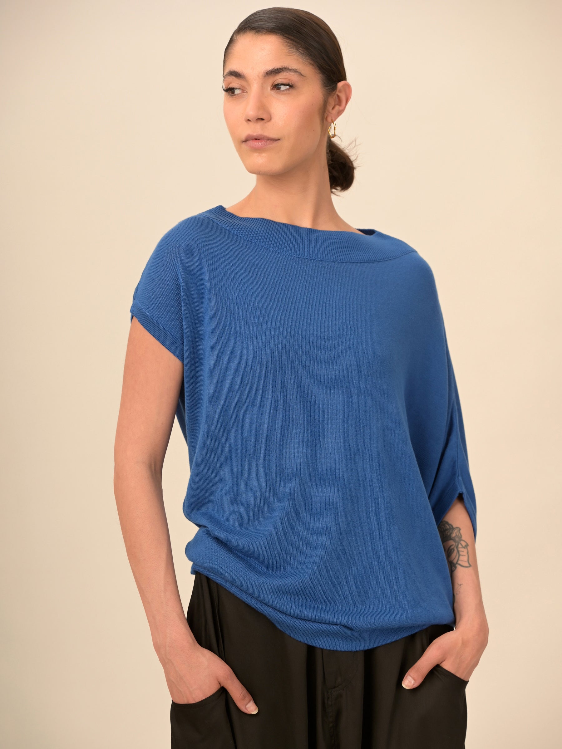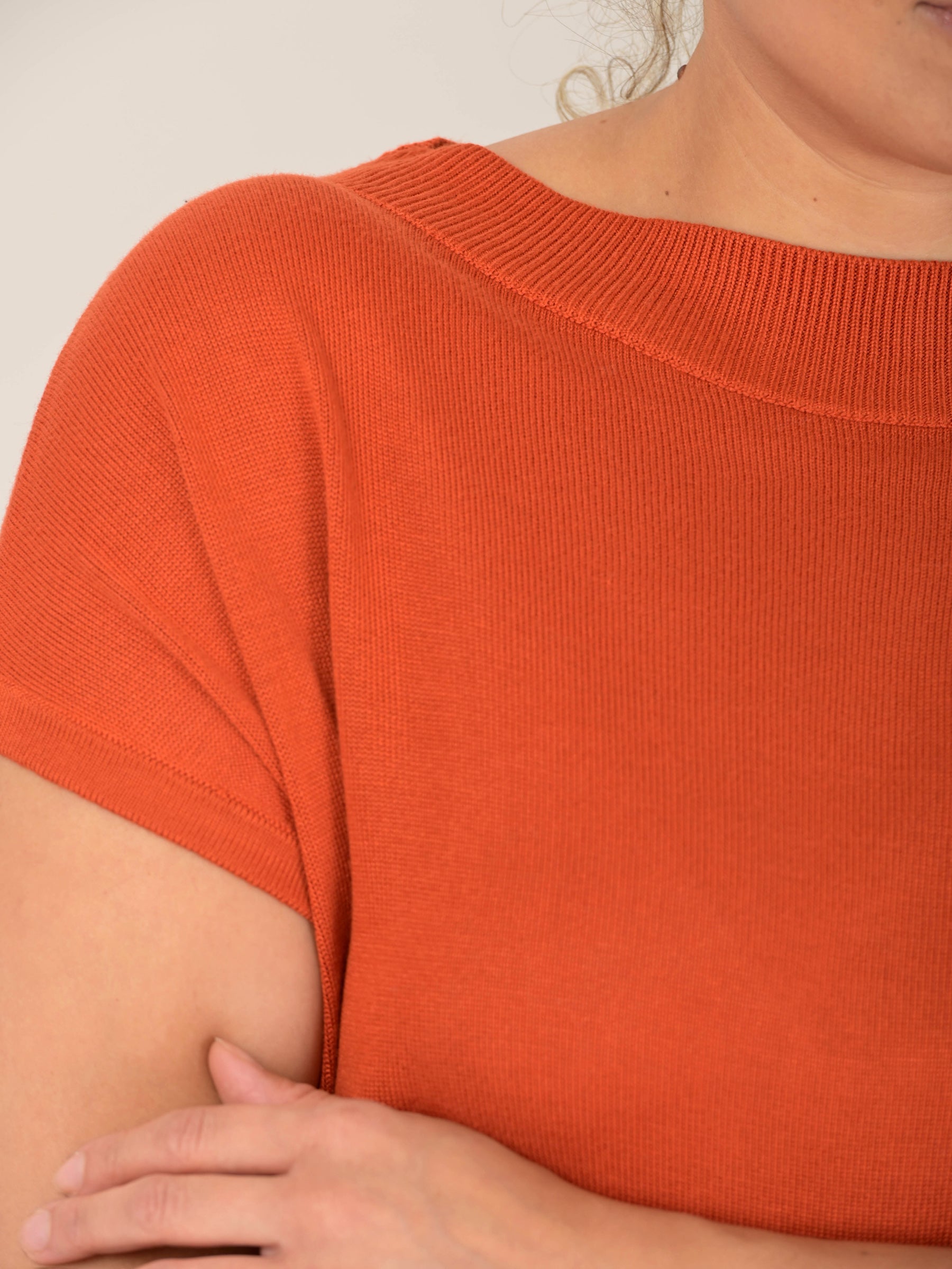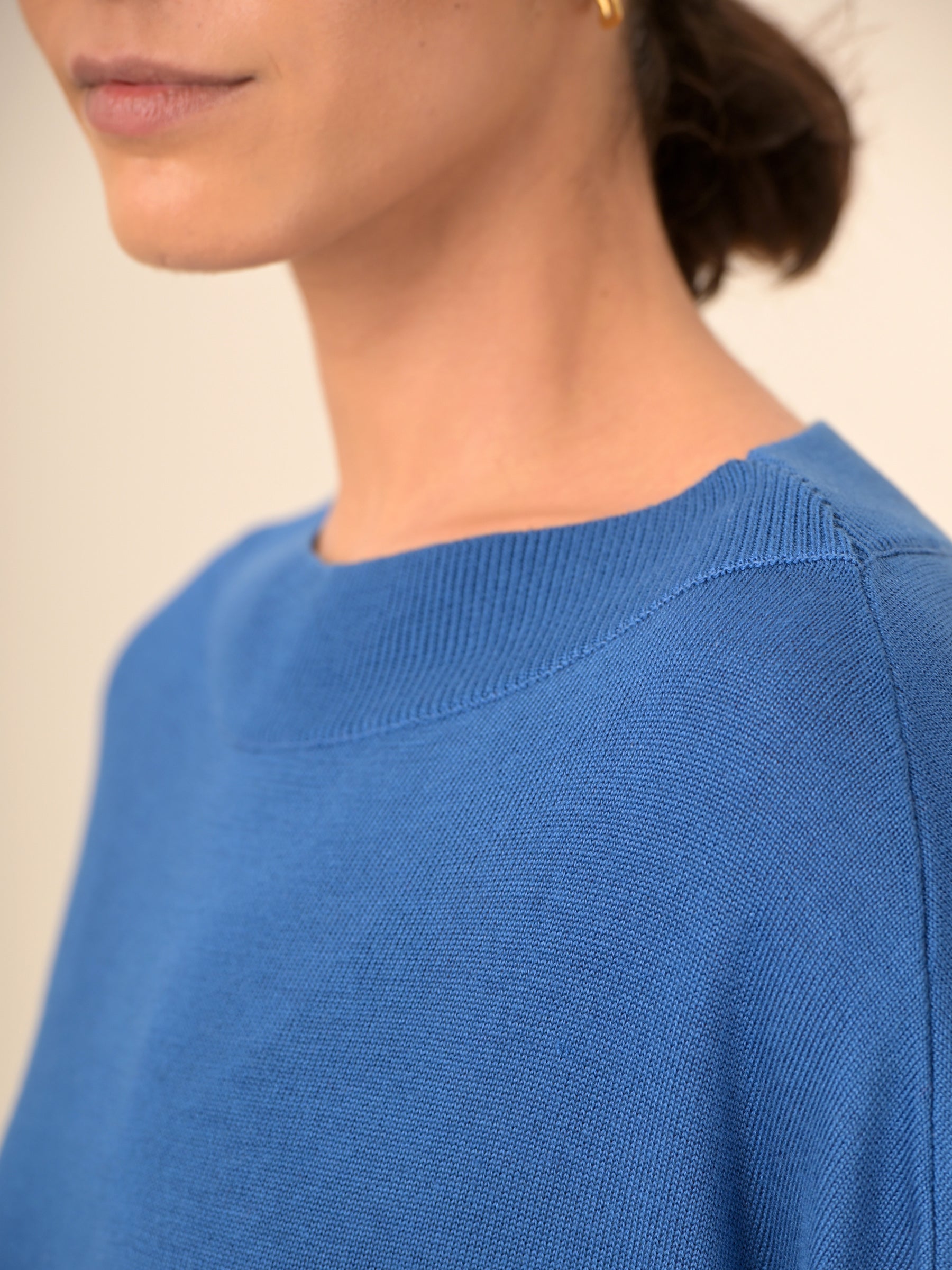 - Straight neckline, with wide ribs