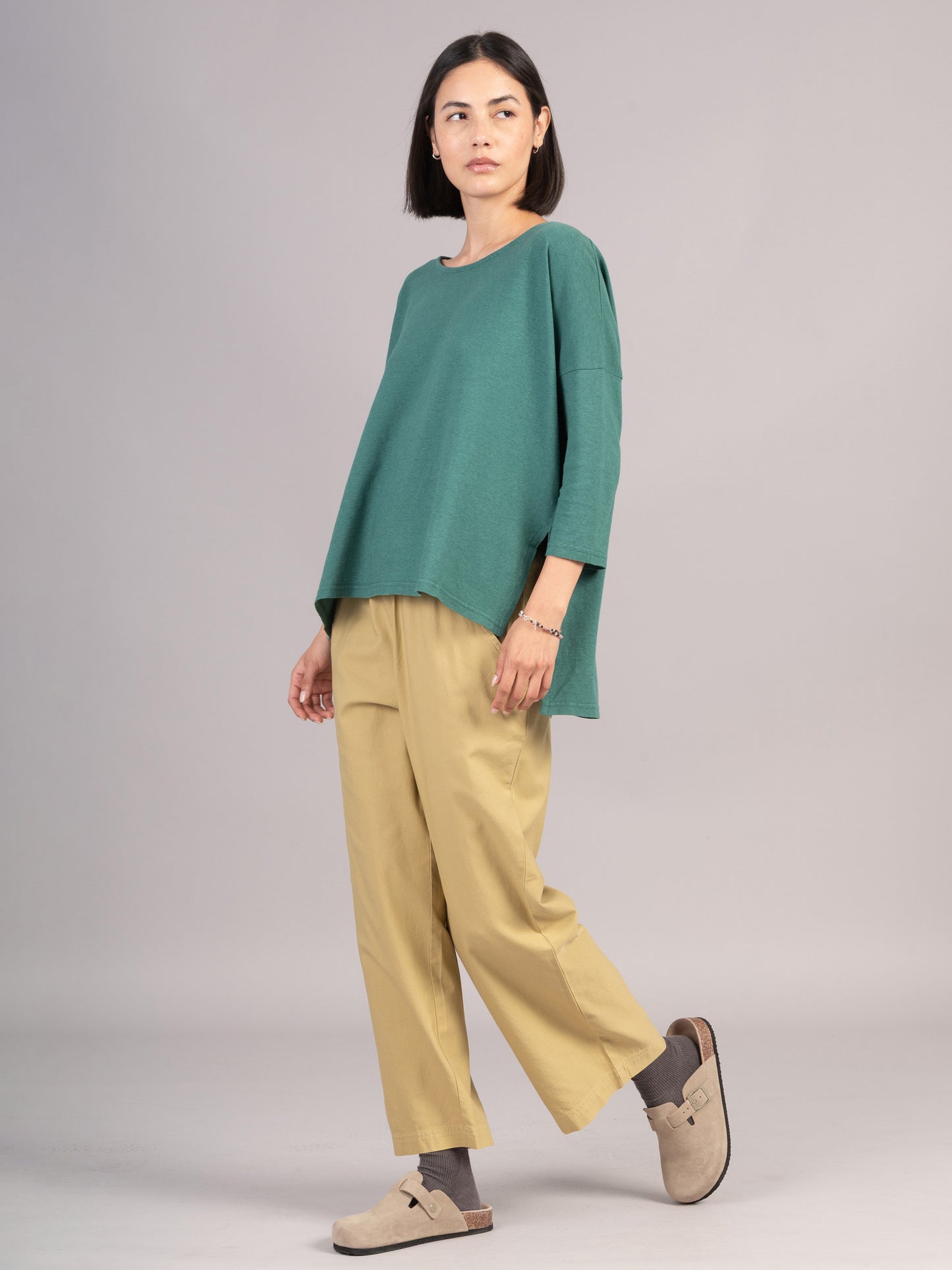 Ce modèle est confectionné dans un tissu en coton biologique doux et de poids moyen, idéal pour le printemps et l'automne. Teint en pièce pour un aspect naturel plus doux.
