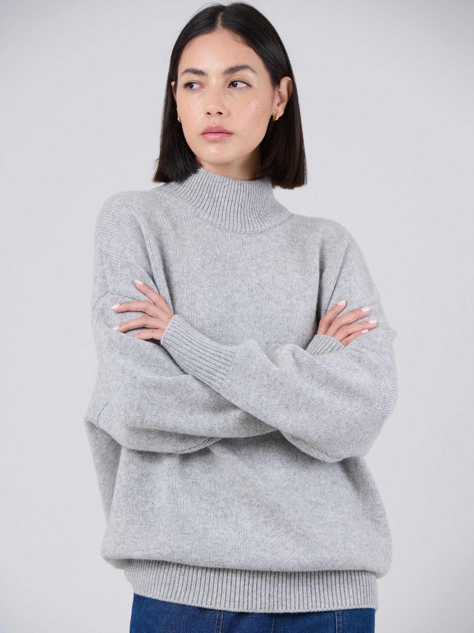 Pull à col roulé col haut épais en laine mérinos et bambou