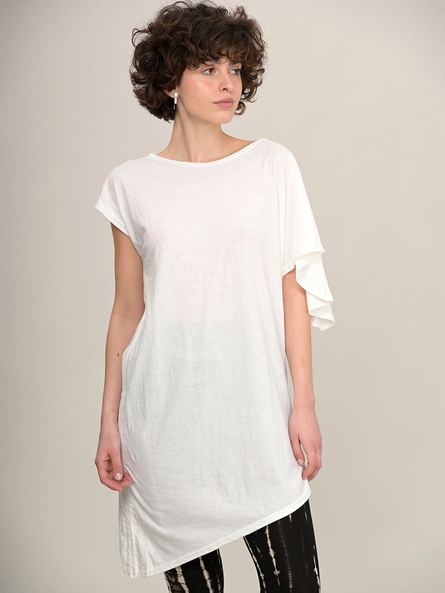 T-shirt asymétrique en chanvre et coton biologique - long - Blanc