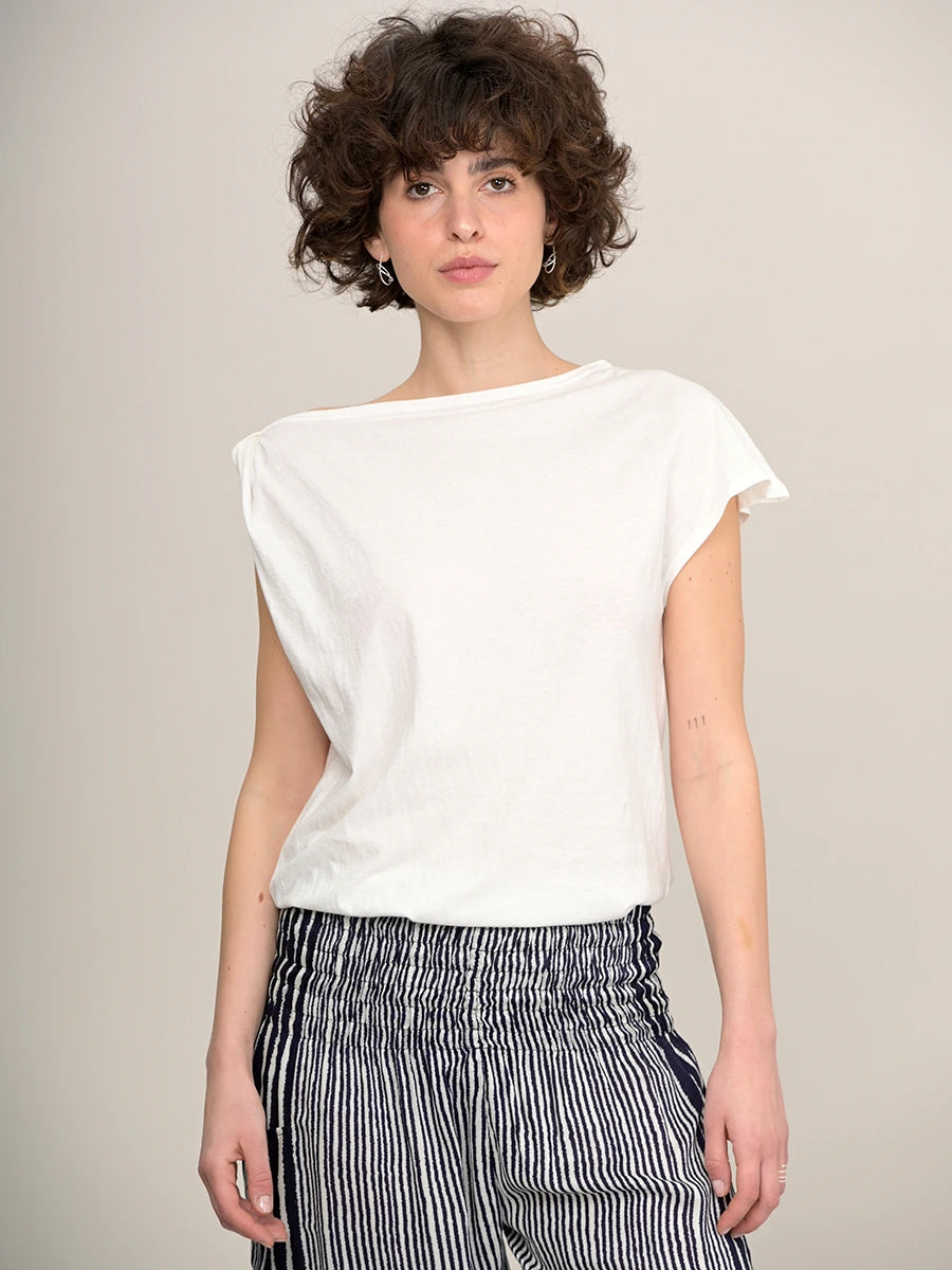 T-shirt en coton bio et chanvre à col bateau